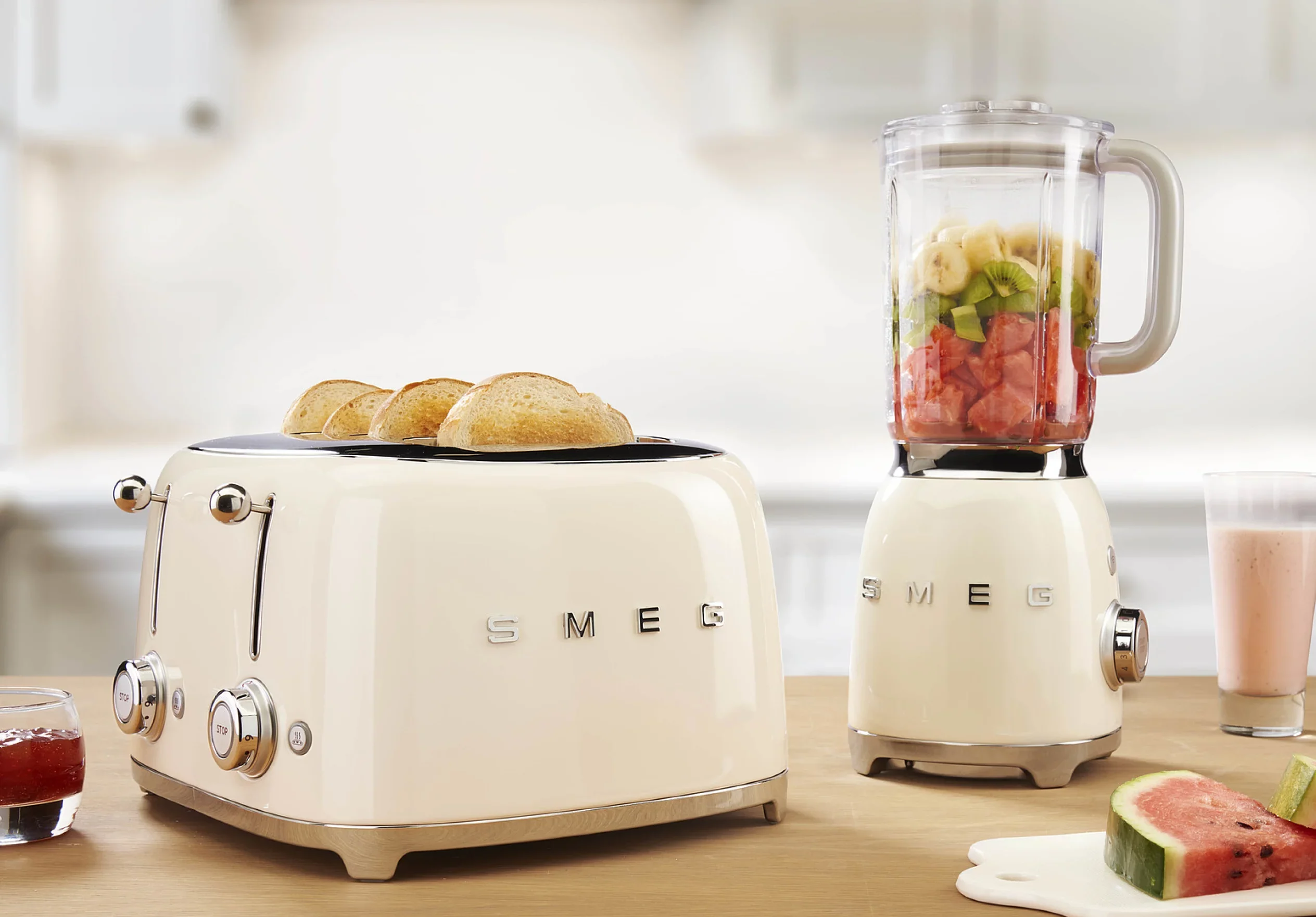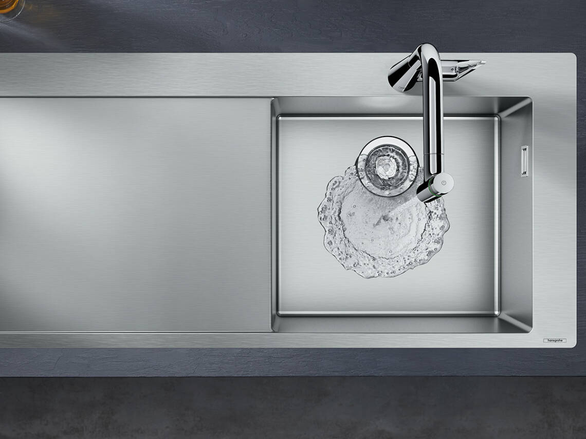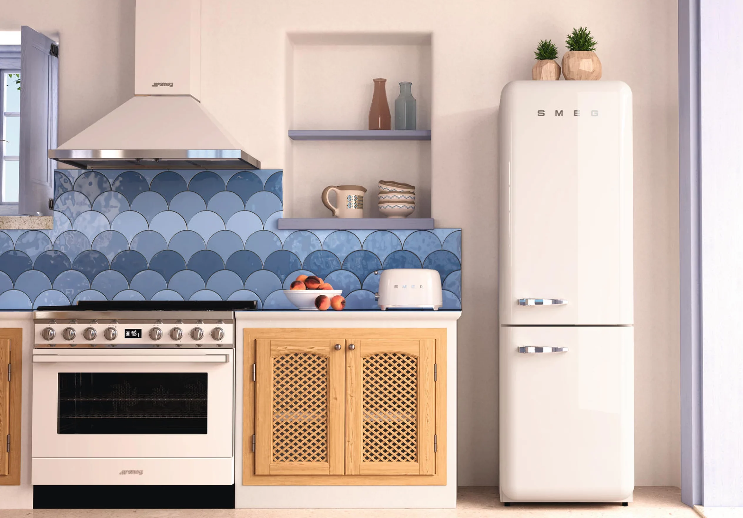 Equipamentos de cozinha elegantes e práticos, incluindo lava-louças, misturadoras e eletrodomésticos de marcas de referência.